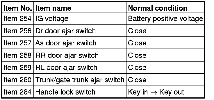 NO (Normal condition is not displayed for item No. 254.) : Inspection Procedure 2.