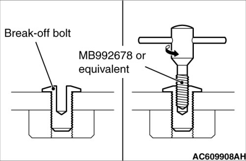 (2) Use recommended tool screw extractor set (MB992678) or equivalent to remove the break-off bolt.