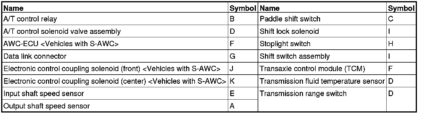 A/T CONTROL COMPONENT LAYOUT
