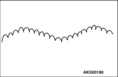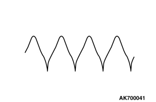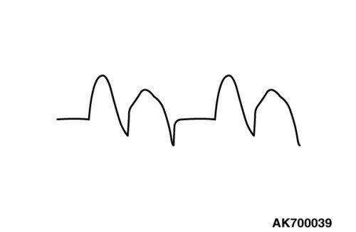 The voltage waveform of the generator "B" terminal can undulate as shown at left. This waveform is produced when the regulator operates according to fluctuations in the generator load (current), and is normal for the generator.