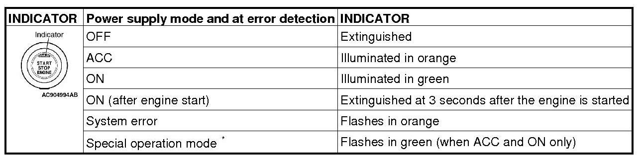 Check that the engine switch indicator is switched as follows in each power supply mode and when an error is detected.