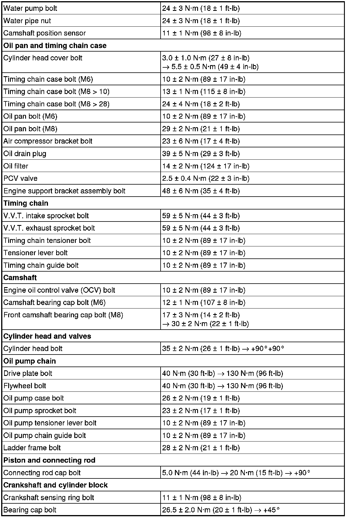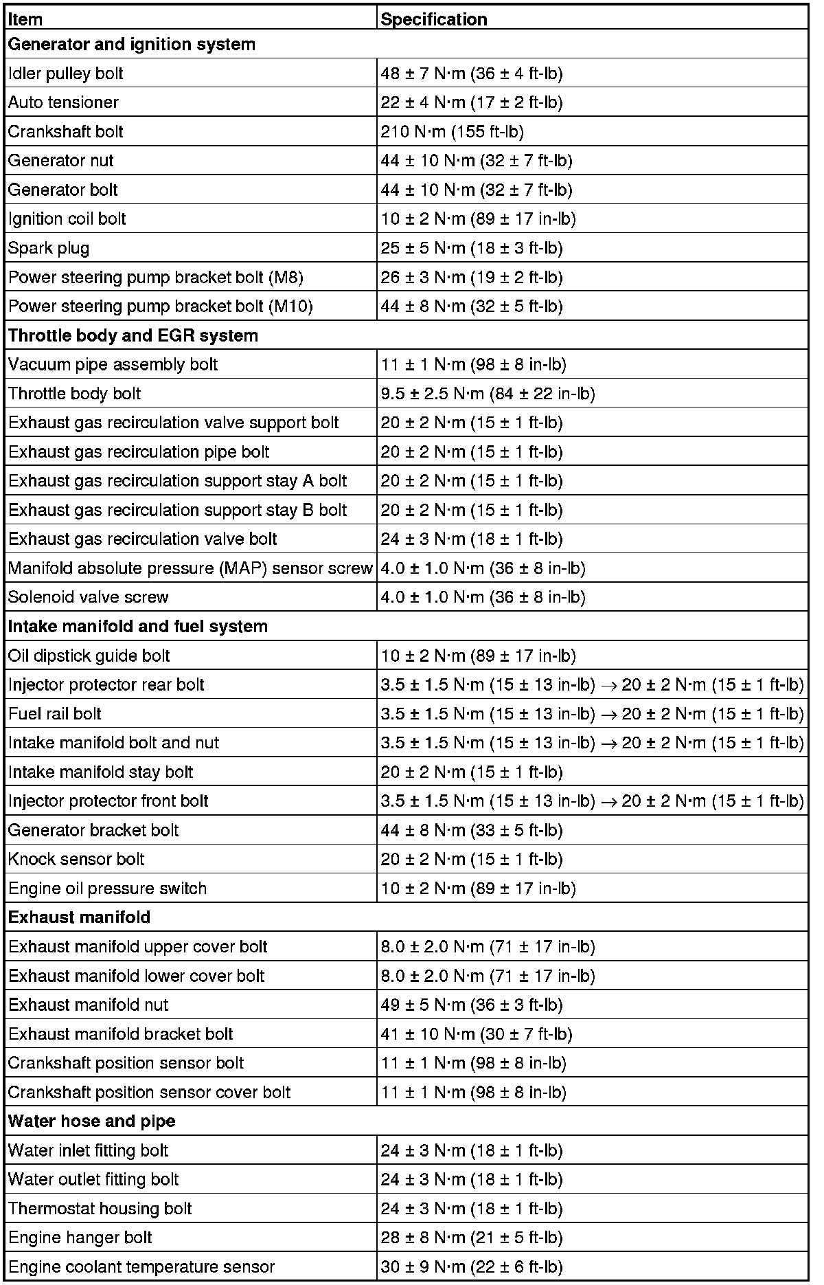 Fastener Tightening Specifications