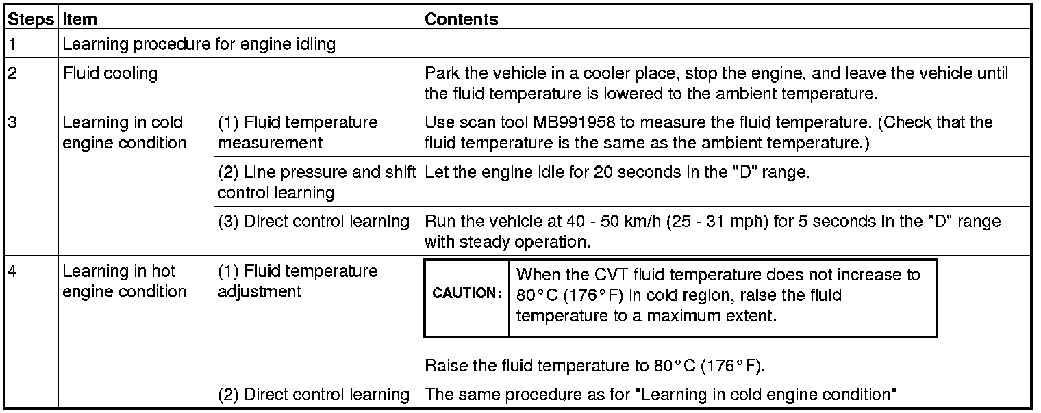 After initialization, the TCM does not have any learned value. This may degrade the shifting operation quality. The learning procedure is described below.