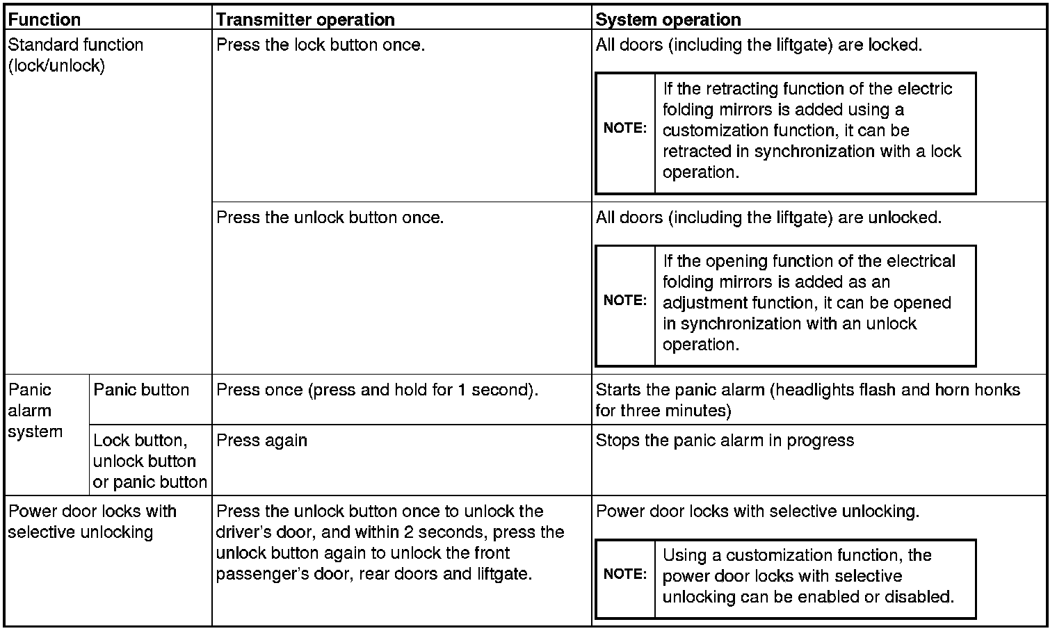- Using a customization function, the power door locks with selective unlocking can be enabled or disabled (Refer to Configuration Function ).