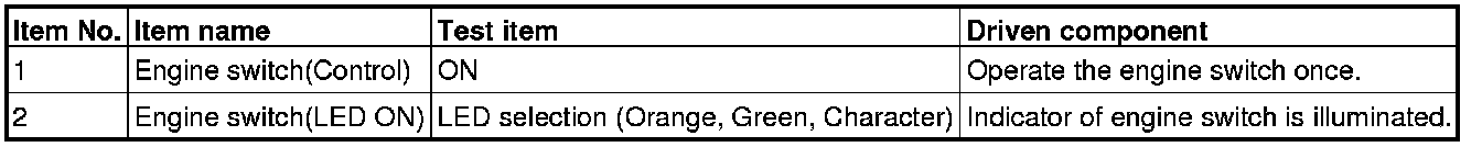 When the actuator test item No.1 is executed, the engine switch indicator flashes in orange.