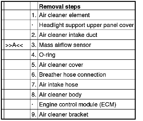 - When removing or installing the mass airflow sensor, be careful not to apply impact to the sensor.