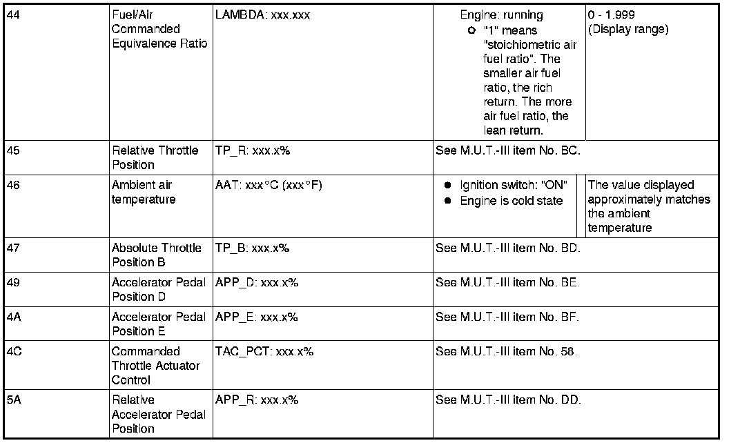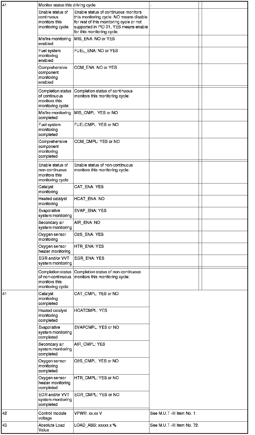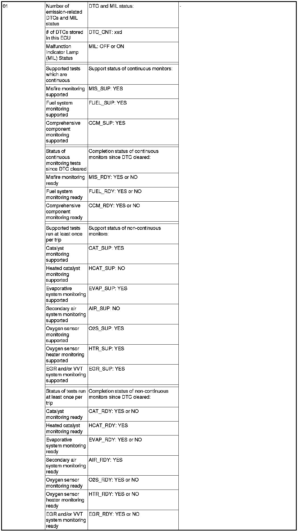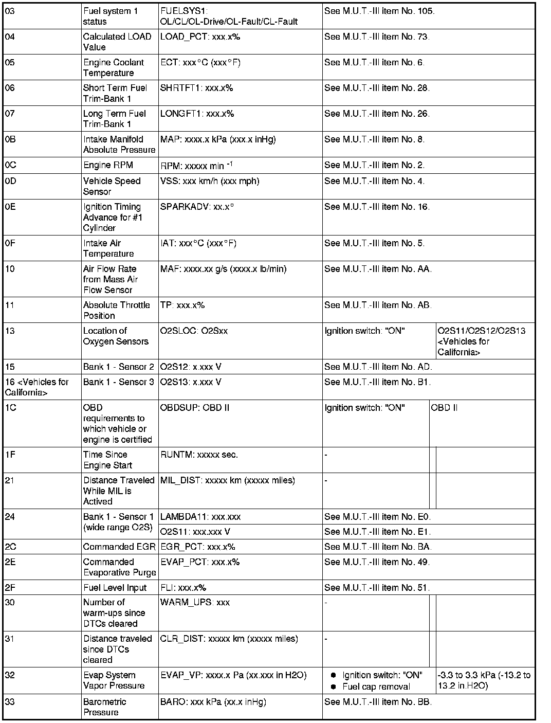General Scan Tool (GST) Mode 01 Reference Table