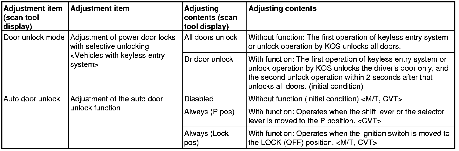 By operating the ETACS system or MMCS of scan tool MB991958, the following functions can be programmed. The programmed information is held even when the battery is disconnected.
