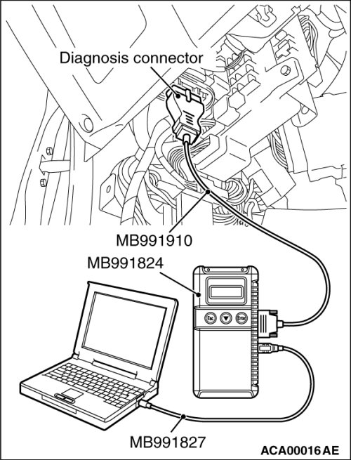 1. Connect scan tool MB991958 to the data link connector.