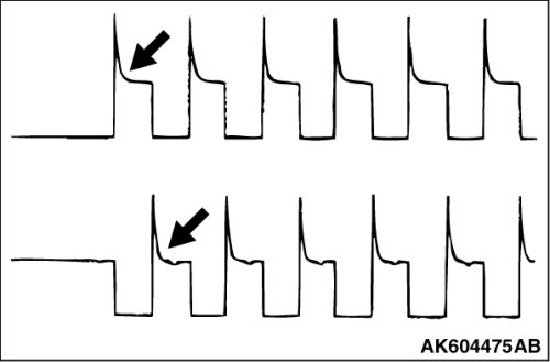 8. Check that the standard wave pattern appears when the EGR valve is operating.