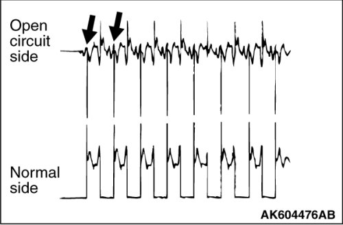 3. Connect the oscilloscope to check harness terminal No. 8. (Check the crankshaft position sensor signal wave pattern.)