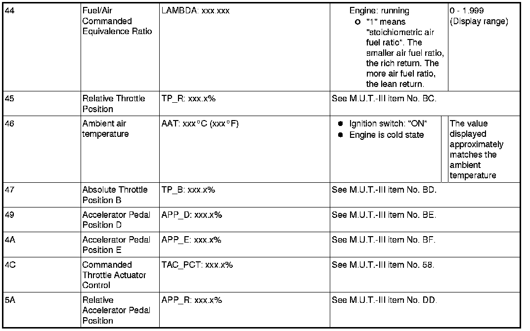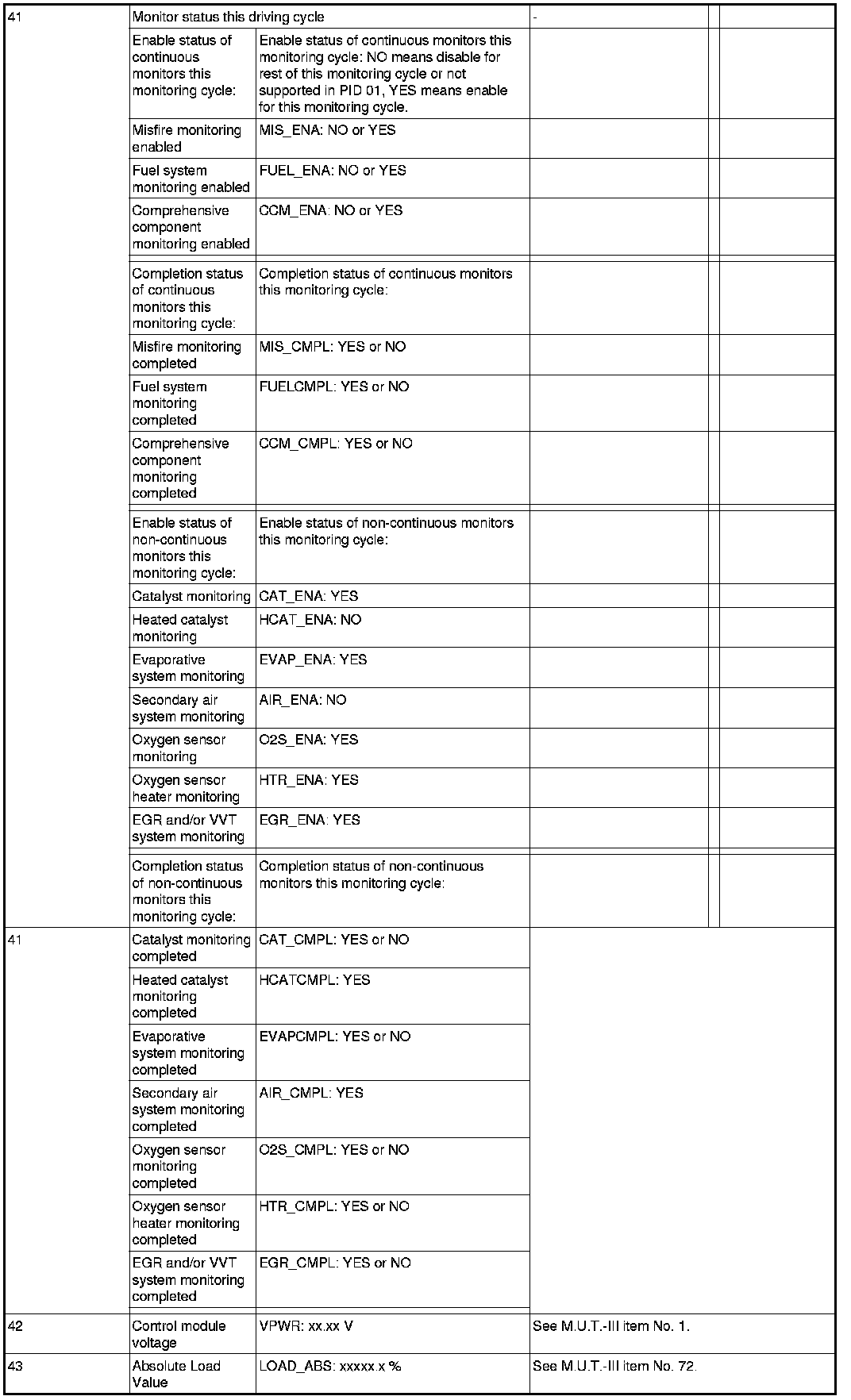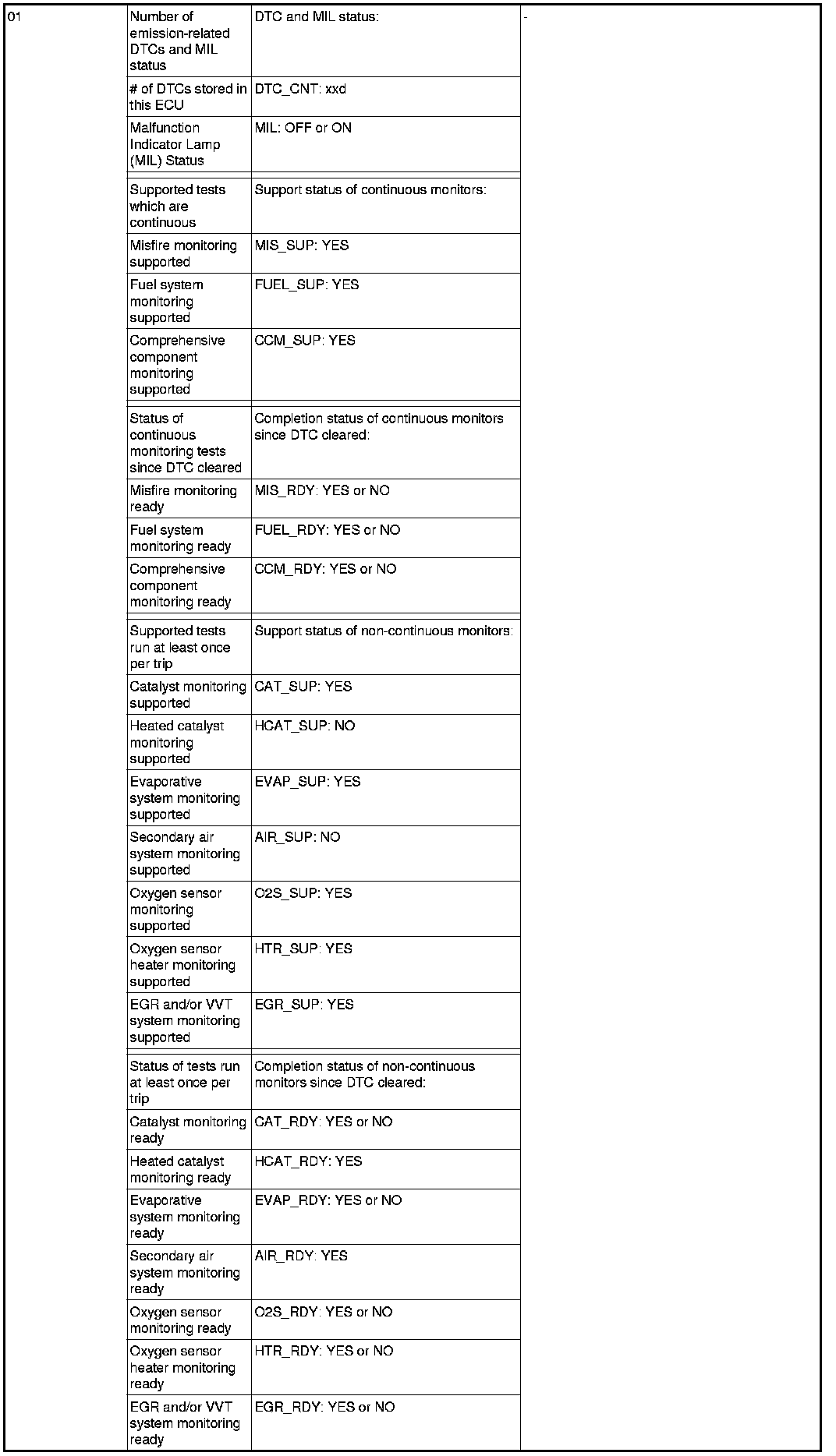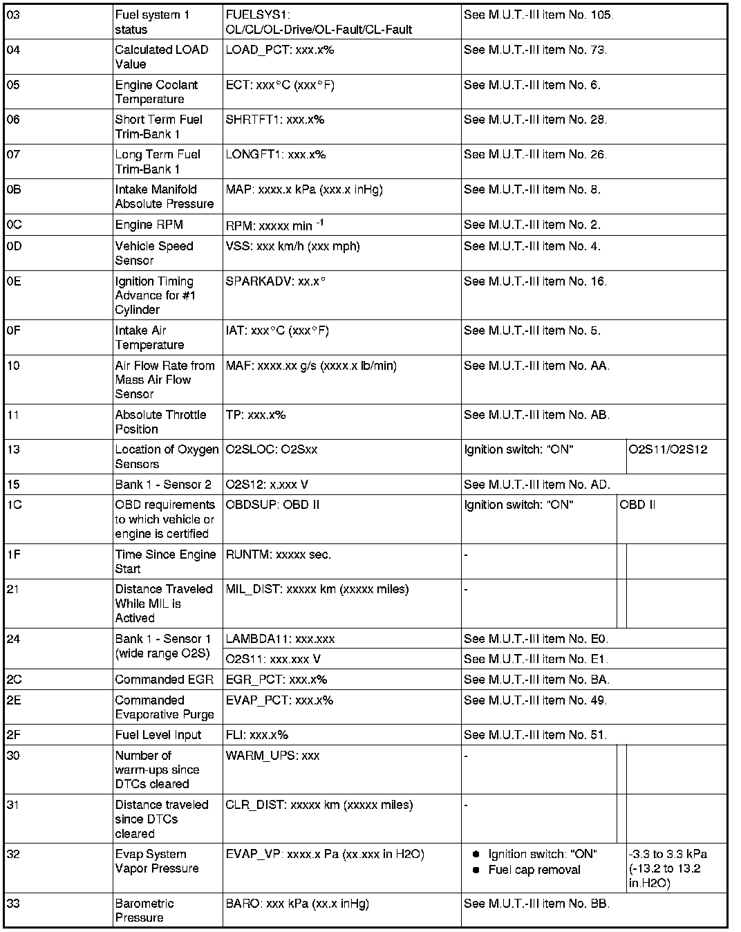 General Scan Tool (GST) Mode 01 Reference Table