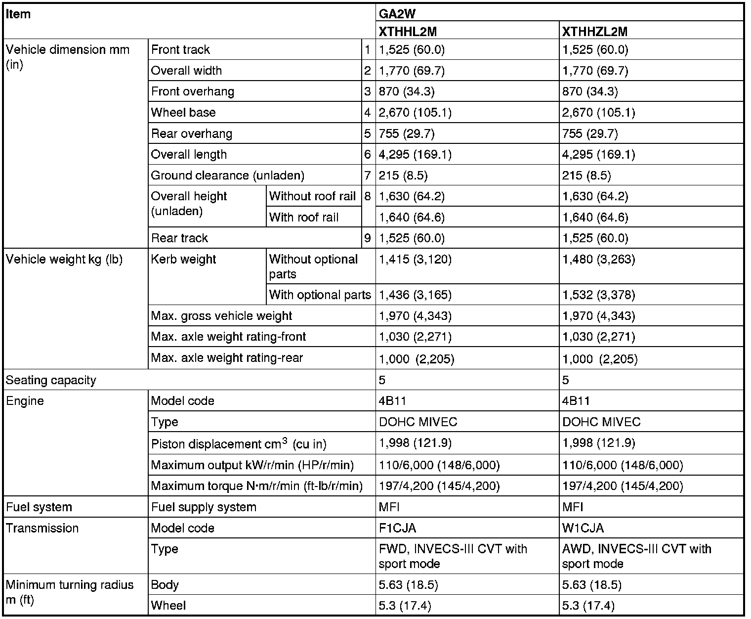 Outlander Sport 2WD L4-2.0L (4B11)