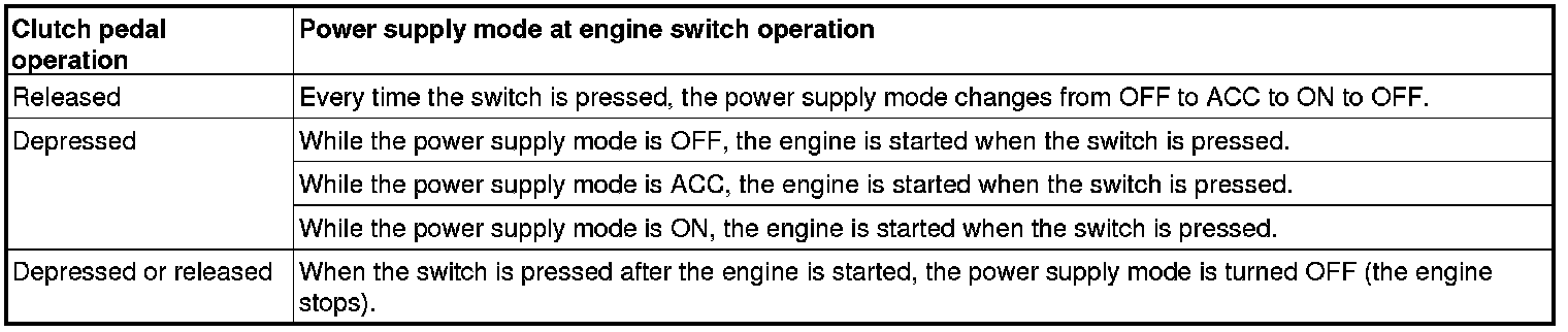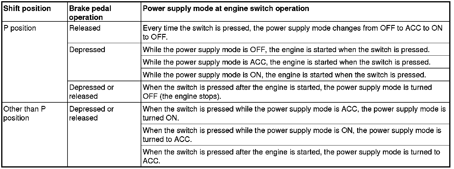 When the engine switch is pressed, the power supply mode changes according to the shift position and brake pedal operation state with the CVT vehicle, and according to the clutch pedal operation state with the M/T vehicle.