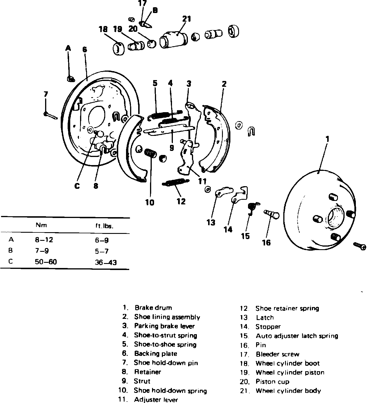 Fig. 1 Exploded view of drum brake assembly.: