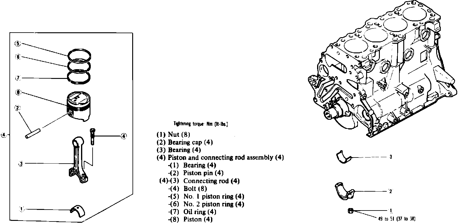 3. Ensure that connecting rod caps and bearings are placed on proper connecting rods, then torque bolts to specification.