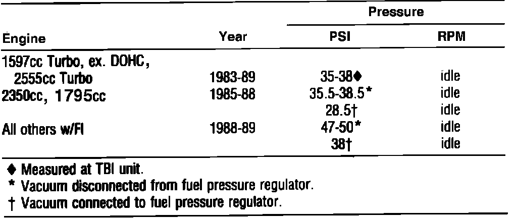 Fuel Pressure: Specifications