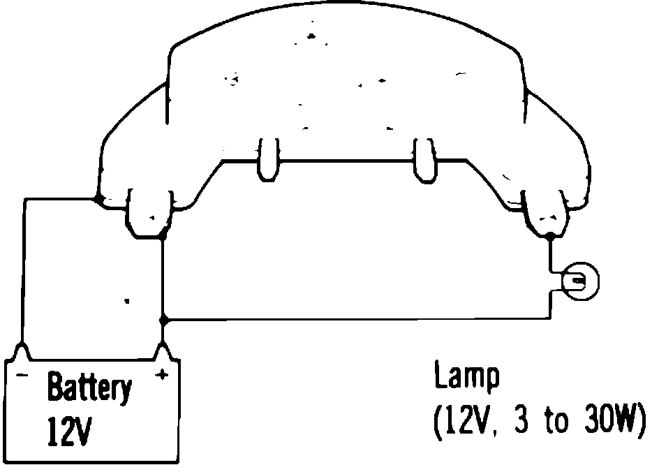 1. Connect a 12V, 3 - 30 watt test lamp between igniter and battery, Fig. 4.