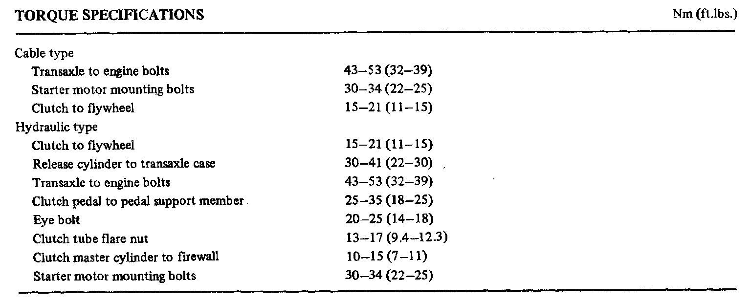 KM163 5-spd M/T / KM166 4-spd M/T, Clutch Torque: