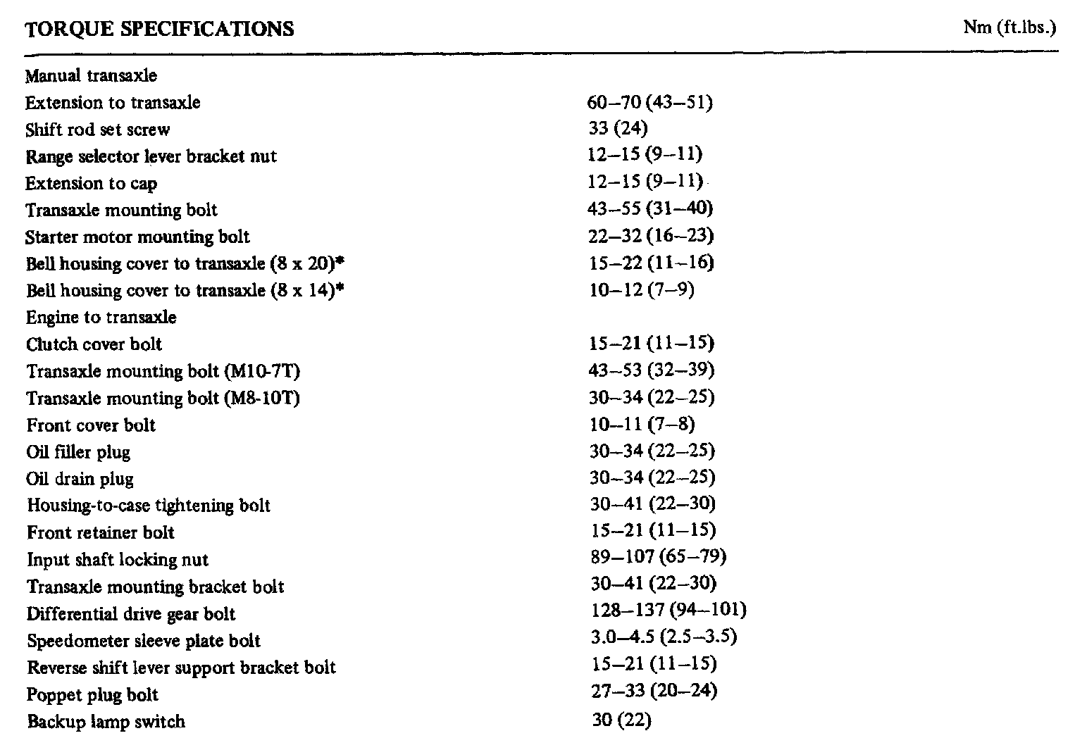 M/T Torque Data
