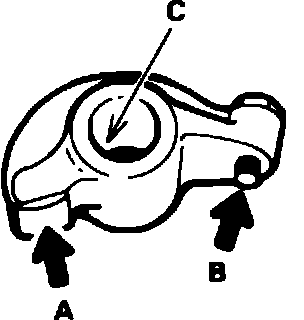 3. Check rocker arm shaft at rocker arm mounting positions for wear.
