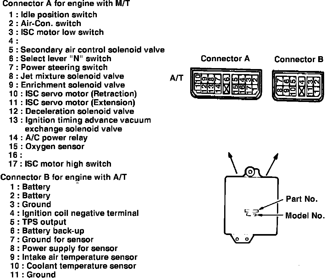 Fig. 21 Carburetor control unit terminal location.: