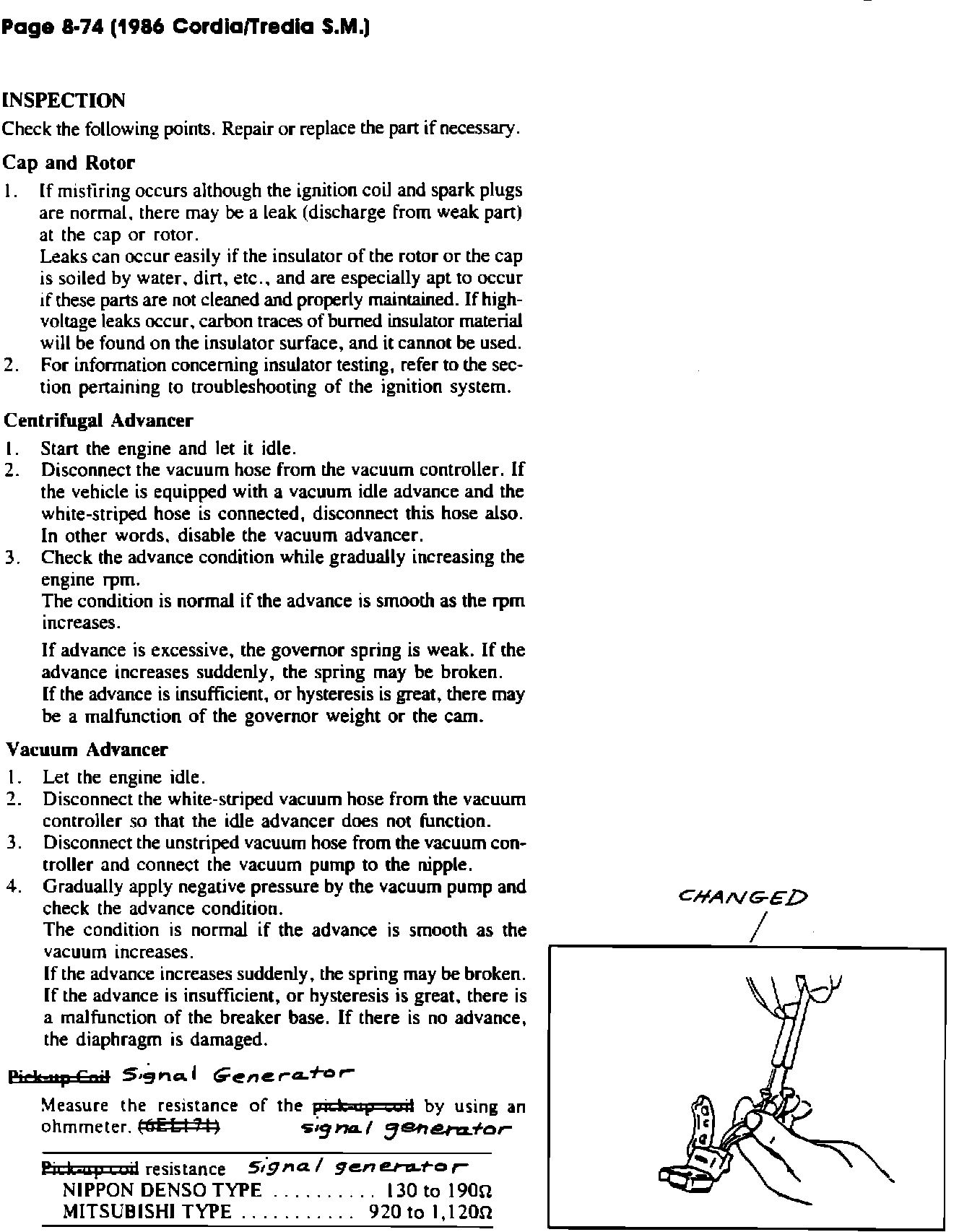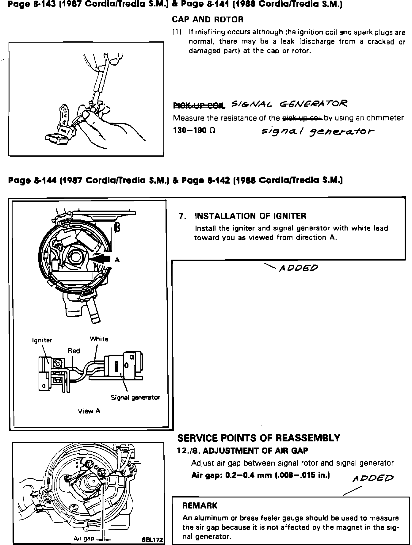 1986 Cordia/Tredia Service Manual Pages 8-74 & 8-76