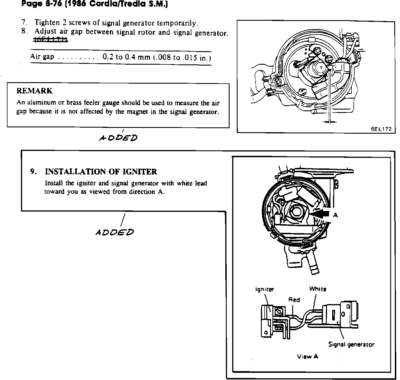 DISTRIBUTOR ASSEMBLY AND ADJUSTMENT - SERVICE MANUAL UPDATE