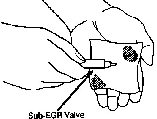 NOTE: Do not use a screwdriver in the bore of the Sub-EGR valve since this will scratch and cause carbon to build up quickly.