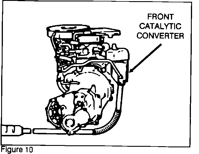 1. Liberally spray penetrating oil on the front catalytic converter retaining bolts. Remove the front catalytic converter (Figure 10) and lower heat protector assembly.