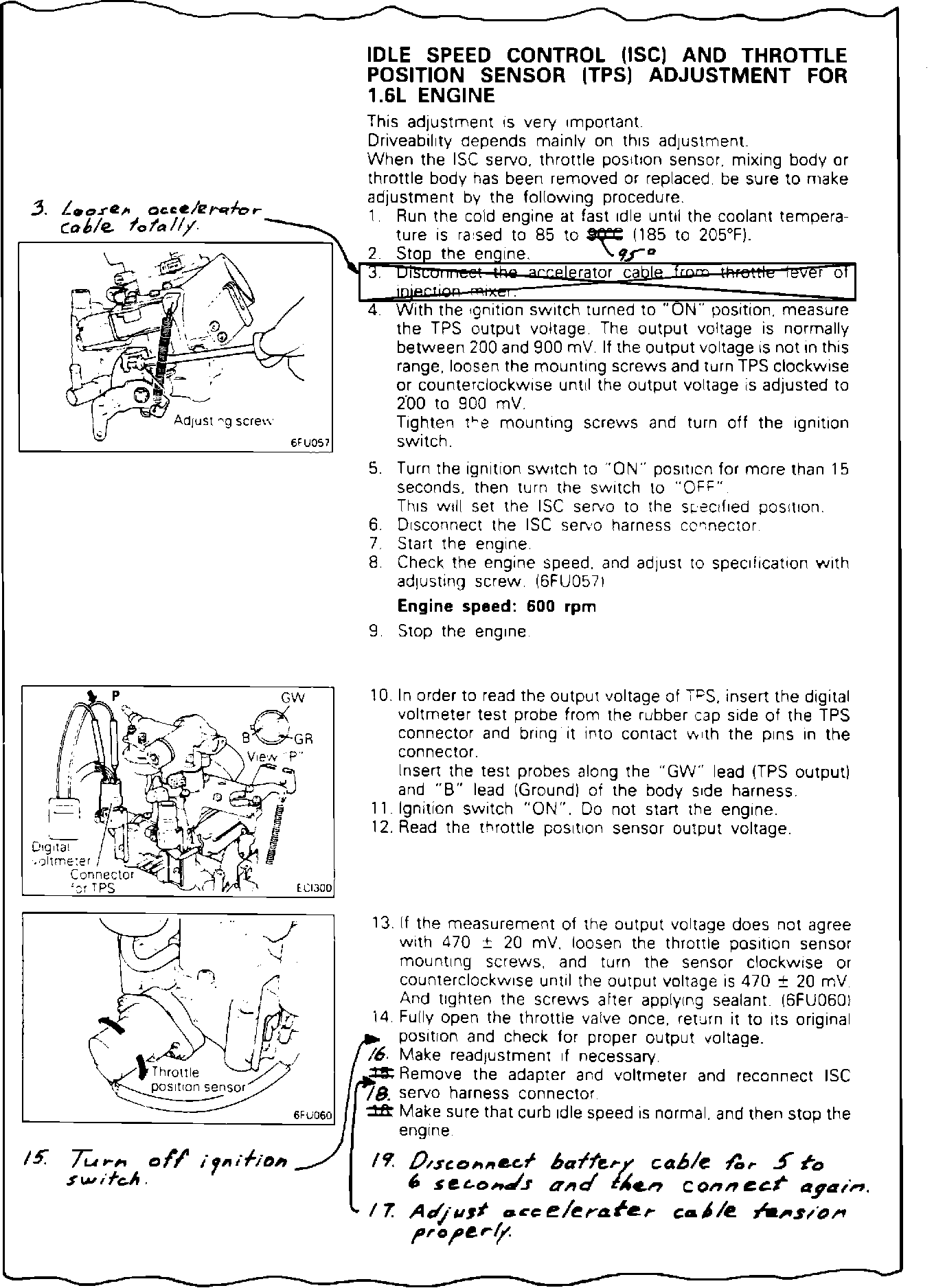 1986 STARION SERVICE MANUAL PAGES 14-11, 12 AND 1986 CORDIA/TREDIA SERVICE MANUAL PAGES 14-16 Revise procedures as shown below.