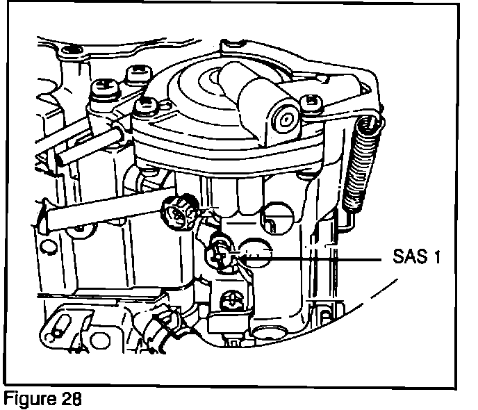 If the idle speed is not between 650 - 850, readjust the idle speed using the idle speed adjusting screw (Figure 28) No. 1 (SAS1).