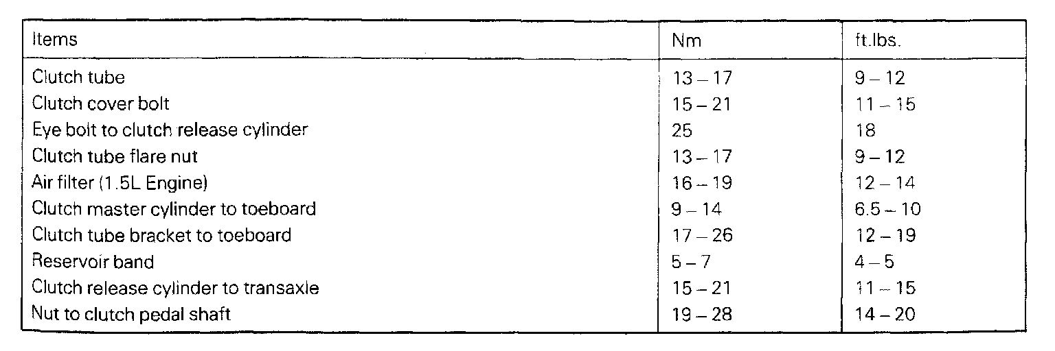 KM200/201/206 M/T, Clutch Torque: