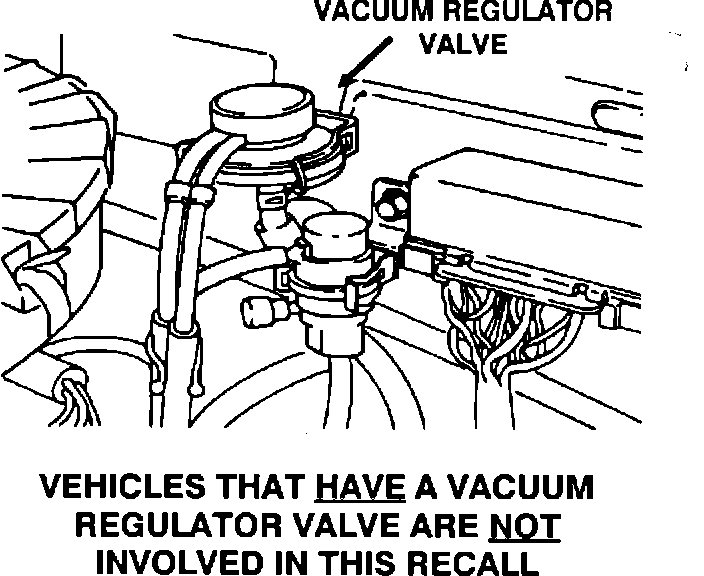 NOTE: Approximately 40 of the cars whose owners were notified have a vacuum regulator valve, located on the bulkhead right next to the High Altitude Compensator valve and thus the Service Writer should inspect each car brought in for this recall. If the car does HAVE a vacuum regulator valve it is NOT involved in this recall.
