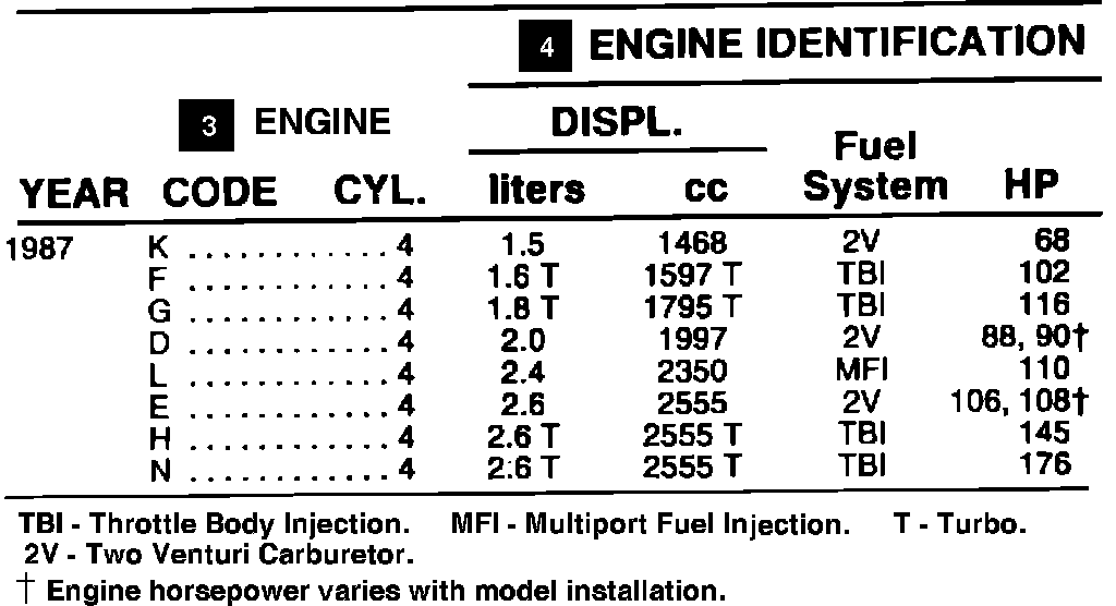 (4) ENGINE IDENTIFICATION: