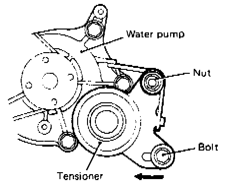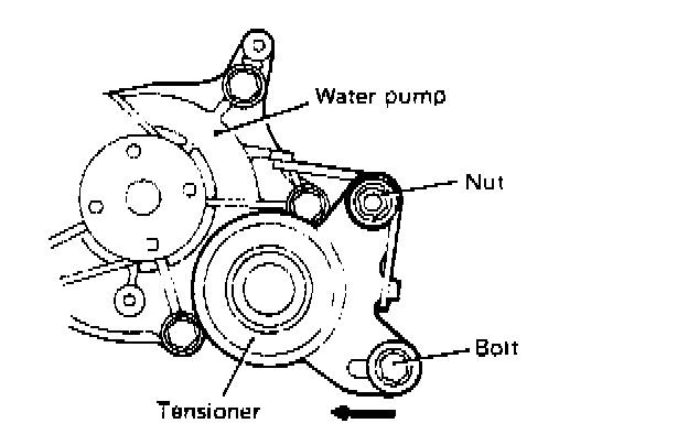 7. Move tensioner fully toward water pump and temporarily secure tensioner.