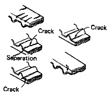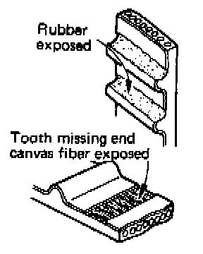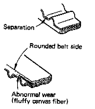 Check the belt in detail. If following flaws are evident, replace belt with a new one.
