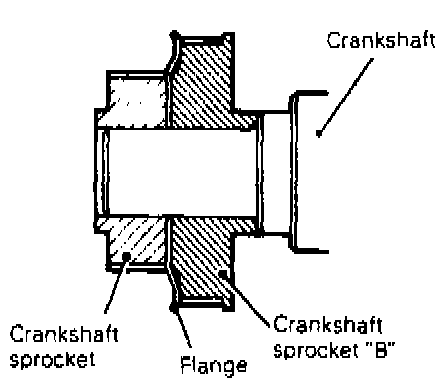 13. Remove the crankshaft sprocket "B" from crankshaft.