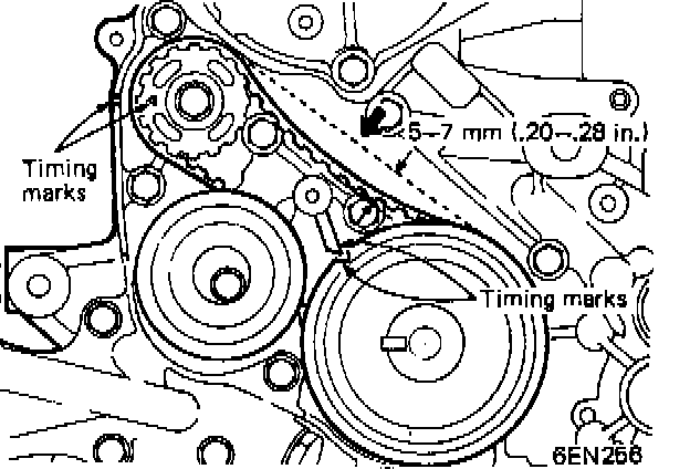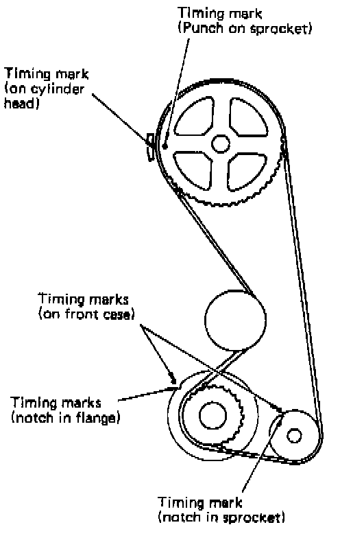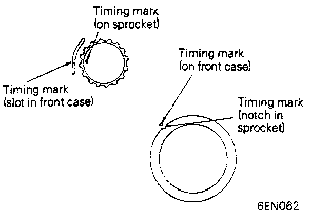 1. Align timing mark on each sprocket with corresponding timing mark on front case.