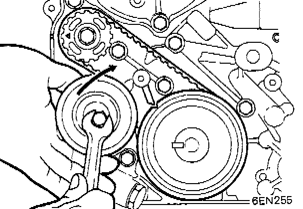 5. If timing belt is to be reused, make an arrow mark which indicating turning direction to ensure that belt is reinstalled in same direction as before.