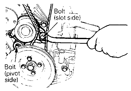 Caution: If the pivot side bolt is tightened first, the tensioner will turn with the bolt, causing overtension.
