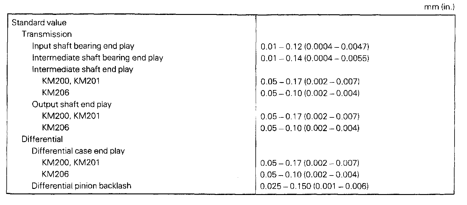 KM200/201/206 M/T, Transmission / Differential End Play: