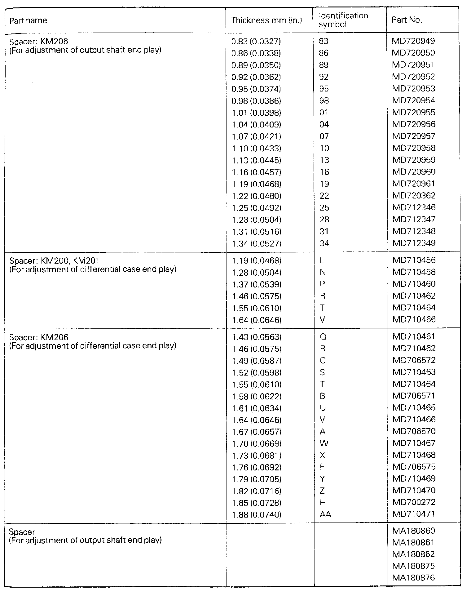 KM200/201/206 M/T, Output Shaft & Differential End Play: