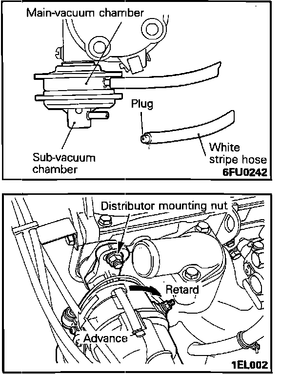 5. After replacing vacuum hose removed in step 2, check that timing advances to the actual timing.