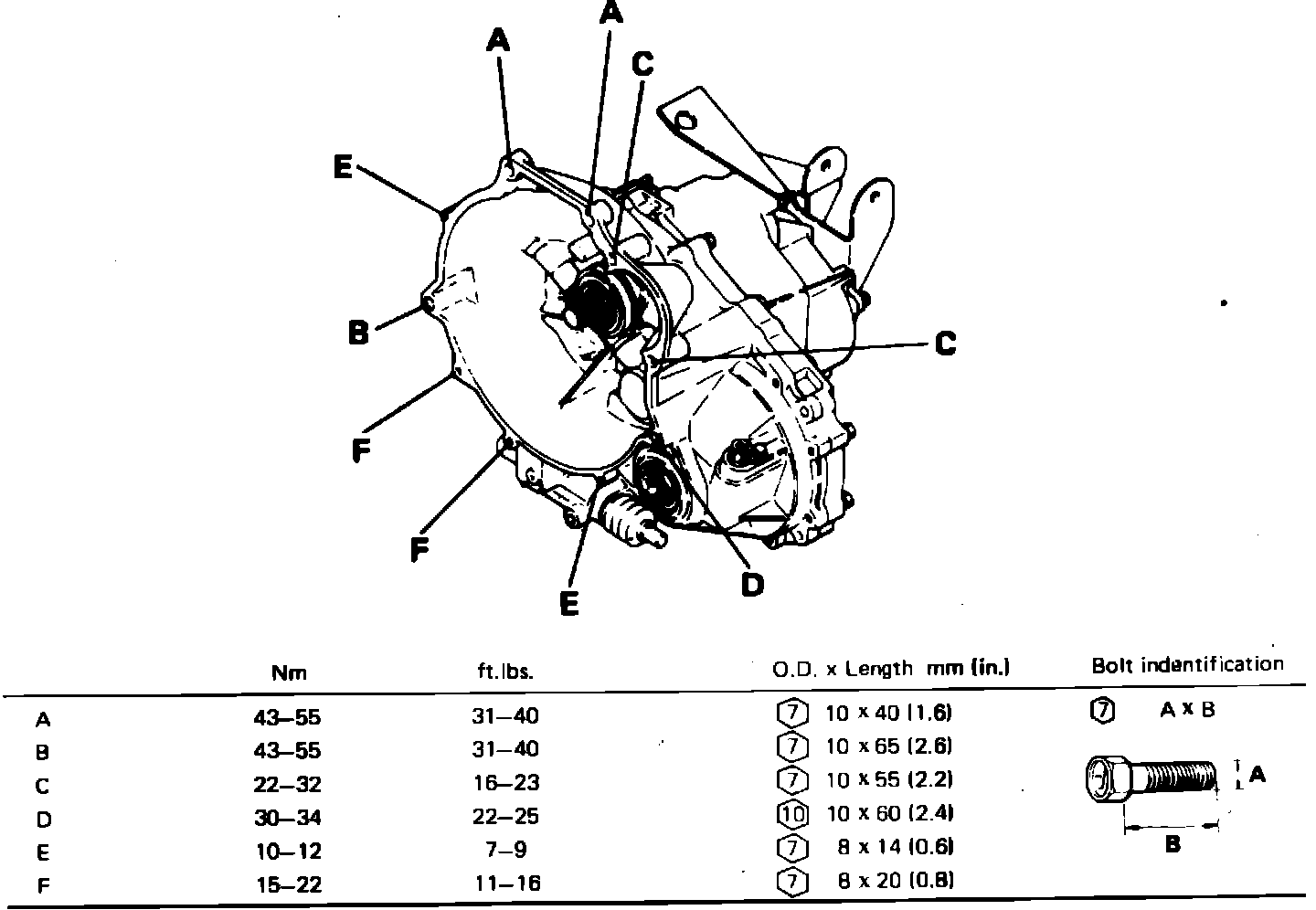 Fig. 14 Engine to transaxle attaching bolts torque values.: