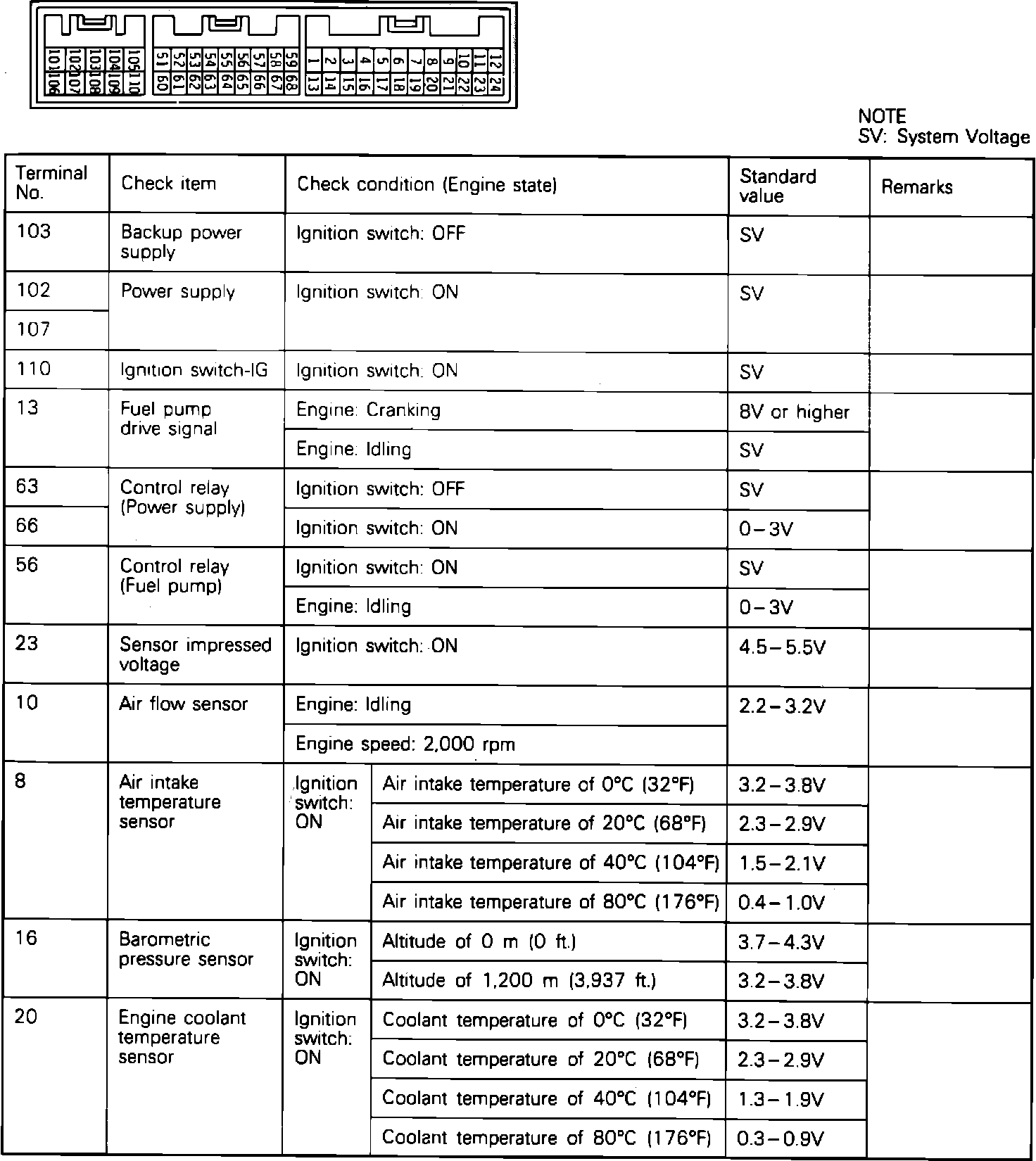 Terminal Voltage Check Chart: