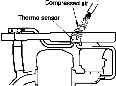 2. Warm up the thermo sensor with a heat gun or hair dryer until thermo sensor temperature exceeds 45 degrees C or 113 degrees F and verify that vacuum leaks through the thermo sensor.