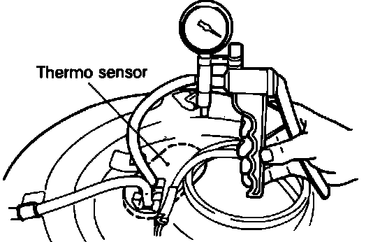 1. Connect a hand vacuum pump to the thermo sensor and verify that when thermo sensor temperature is less than 30 degrees C or 86 degrees F that vacuum does not leak through the thermo sensor.
