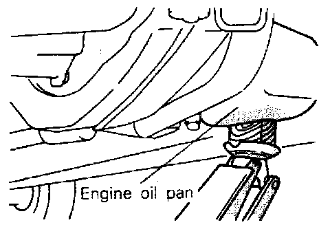 (1) With a wooden block placed against the oil pan part of the engine, jack up the vehicle.