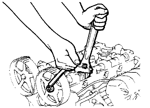 Caution: Locking the camshaft sprocket with a tool damages the sprocket.